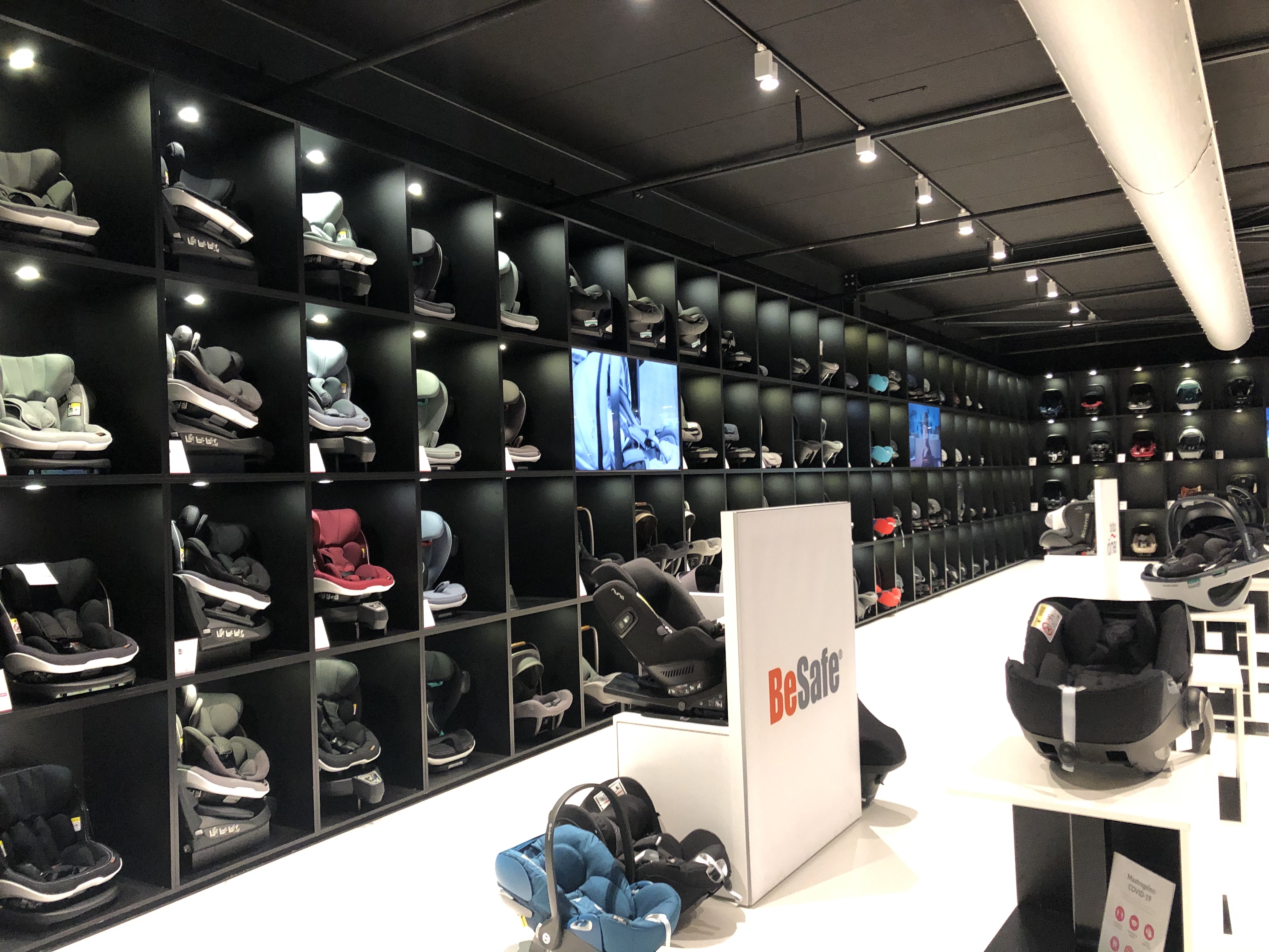 Toen we aankwamen op de verdieping met kinderwagens en autostoeltjes viel mijn mond open van verbazing: wat een groot aanbod! Muren vol kinderstoeltjes en rijen met buggy’s… In de showroom stond zelfs een echte auto om stoeltjes uit te proberen en er was een parcours aanwezig met diverse ondergronden om de kinderwagens op te testen. Ik was helemaal overweldigd – waar te beginnen? – en vreesde voor een aanval van keuzestress…