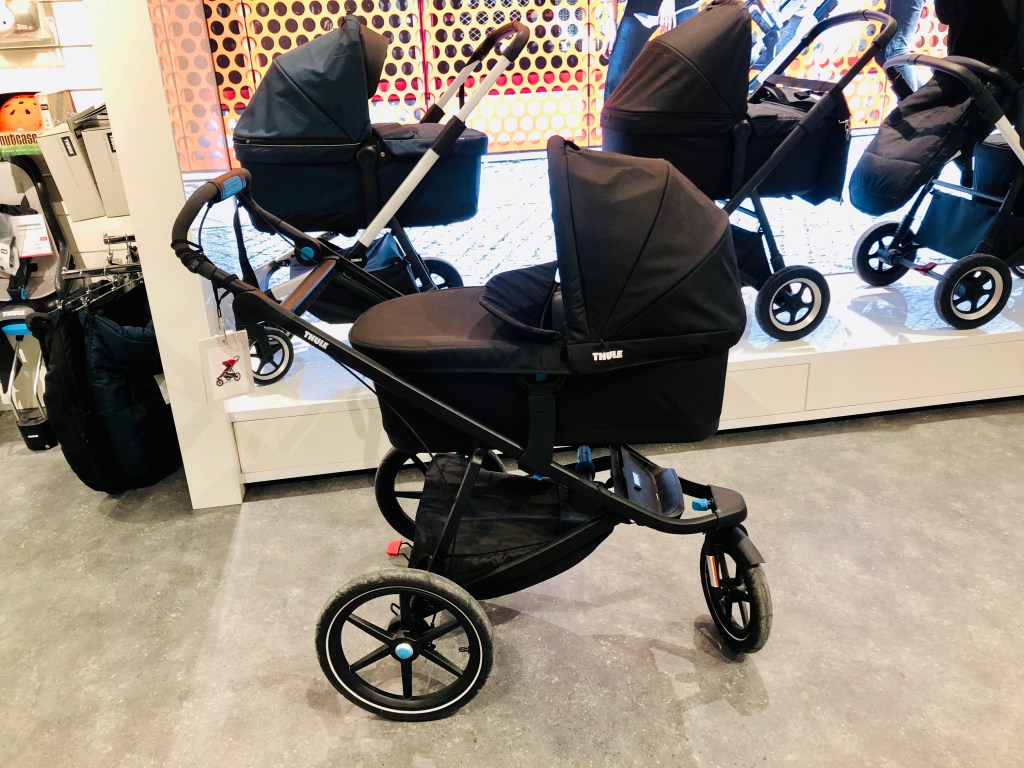 Gelukkig wist ik dat onze nieuwe kinderwagen in elk geval aan één criterium moest voldoen: hij moest geschikt zijn om mee te gaan hardlopen. Dat maakte de keuze een stuk makkelijker! De verkoopster had welgeteld één model staan dat zich hiervoor leende: de Thule Urban Glide 2. Ik was meteen enthousiast, en opgelucht! De verkoopster legde uit dat er ook een reiswiegje bij hoorde, dat je er tijdens de eerste maanden op kunt zetten. Het showmodel met winterslaapzak mocht tegen een aantrekkelijke prijs mee naar huis. Ik besloot toch om thuis eerst nog wat vergelijkend warenonderzoek te toen.