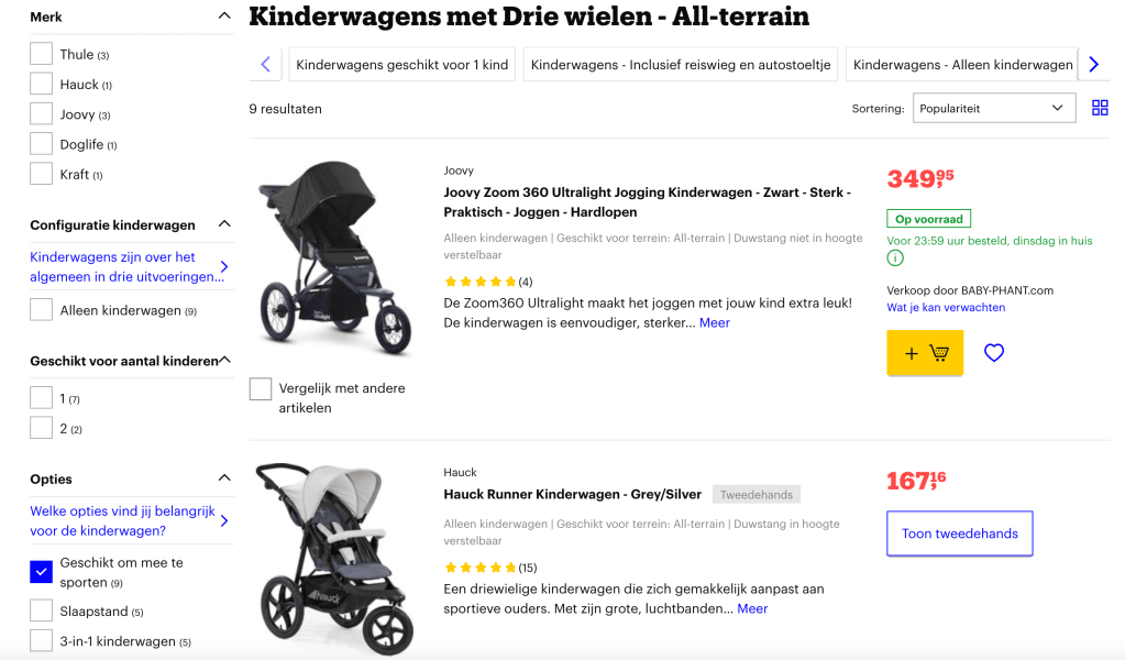 Mijn online zoektocht leidde me naar diverse merken die hardloopkinderwagens aanbieden; zoals Thule, Joovy en Hauck. Er is qua vormgeving en budget voor ieder wat wils. Mocht je er geen fortuin aan willen uitgeven, dan zijn de wagens van Hauck vanwege hun stuk lagere prijs wellicht interessant. Thule is de meest luxe variant. Joovy zit er een beetje tussen in biedt een goede prijs-kwaliteit verhouding.