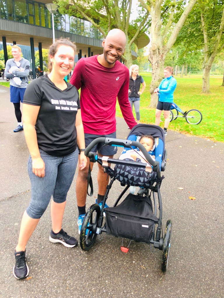 Voordat ik moeder werd, was ik fysiek in topvorm: ik gaf meerdere keren per week runningtherapie, trainde voor de marathon en Davy en ik genoten ervan om in het weekend samen lange afstanden te lopen (30km+). Nadat ons zoontje werd geboren, kwam de klad in mijn hardlooproutine en holde mijn conditie achteruit. Ik vond het als kersverse moeder moeilijk om mijn trainingsmomenten te pakken gedurende de week. Het leek me daarom heel fijn om mee te gaan doen met parkrun, om in elk geval één vast hardloopmoment in de week te hebben en het rennen weer op te bouwen met een korte afstand van 5km. Het leuke van parkrun leek me ook dat je – in tegenstelling tot veel andere hardloopevenementen – mee mag doen met een hardloopkinderwagen. Hoe gaaf om onze liefde voor hardlopen te delen met ons zoontje en om een wekelijks quality time moment te hebben als sportief gezin! De Zuiderparkrun is echt een family friendly event, waar we leuke andere jonge ouders hebben ontmoet.
