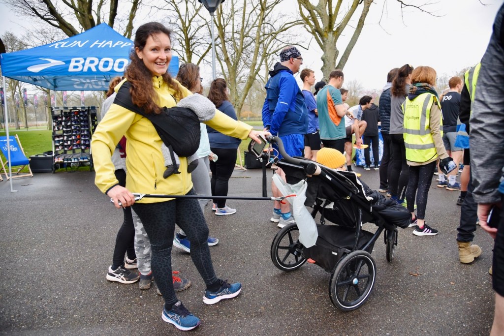 Ik werkte samen met collega parkrunner Sue: zij droeg een grote vuilniszak en handschoenen en ik ging te werk met een prikker, omdat ik met de zes weken oude baby Camil in de draagzak niet zo makkelijk kon bukken. Het was aangenaam en gezellig om in het zonnetje samen op te ruimen. Het geeft een goed gevoel iets terug te doen voor het park waar wij elke zaterdag zo van genieten.