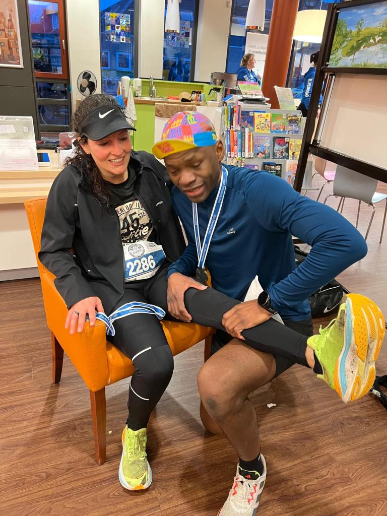 Op 23 december 2023 werd ik aangereden tijdens de halve marathon van de Linschoten. Een ongeluk dat in een paar seconden gebeurde, maar heel mijn jaar op z’n kop zette. Al mijn plannen werden letterlijk en figuurlijk omver gereden. Sindsdien heb ik heel hard gewerkt aan mijn herstel. Als runningtherapeut was ik ervan overtuigd dat ik – zodra het fysiek weer kon – hardlopen wilde inzetten als onderdeel van mijn revalidatie. De afgelopen maanden heb ik langzaam opgebouwd en er naar toegewerkt om mijn comeback te maken. Het leek mij een enorm helend en empowering om een jaar later weer aan de start van deze loop te kunnen verschijnen. Het werd een emotionele en uitdagende maar ook hartverwarmende dag!