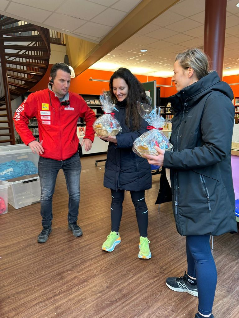 We waren door de organisatie uitgenodigd iets eerder te komen zodat we elkaar voor de start van de halve marathon nog even konden zien en spreken. We werden enorm warm welkom geheten. Het was fijn om evenementleider Evert, die ik toen ik in het ziekenhuis lag kort heb gesproken en die sindsdien steeds per whatsapp betrokken bleef informeren naar mijn herstel, in levende lijve te ontmoeten. Elsa en ik werden in de watten gelegd en kregen een Linschotenloop kerstpakket en een t-shirt van het 45-jarige jubileum van de loop. We kregen een rustige plek om te zitten en ons om te kleden en dat hielp om – ondanks alle zenuwen en emoties – goed aan de race te beginnen.